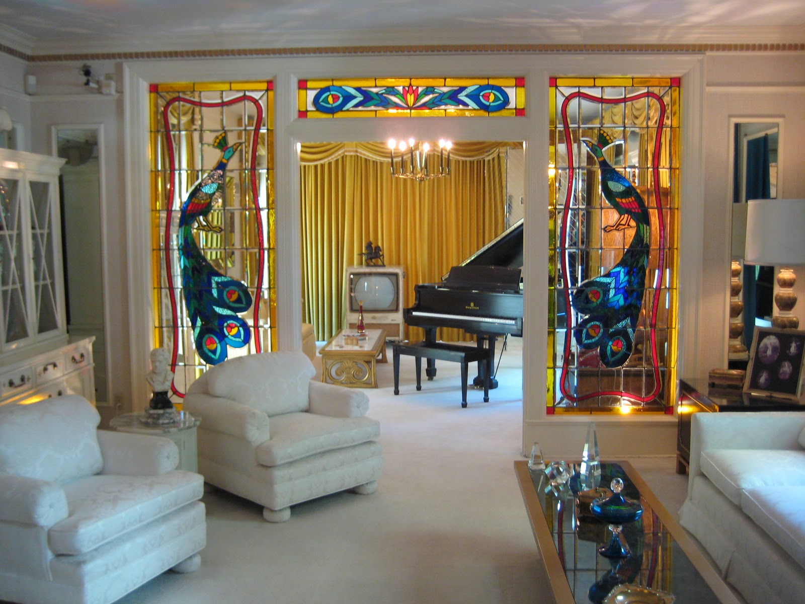 | View from living room into music room. Elvis loved the color blue. |